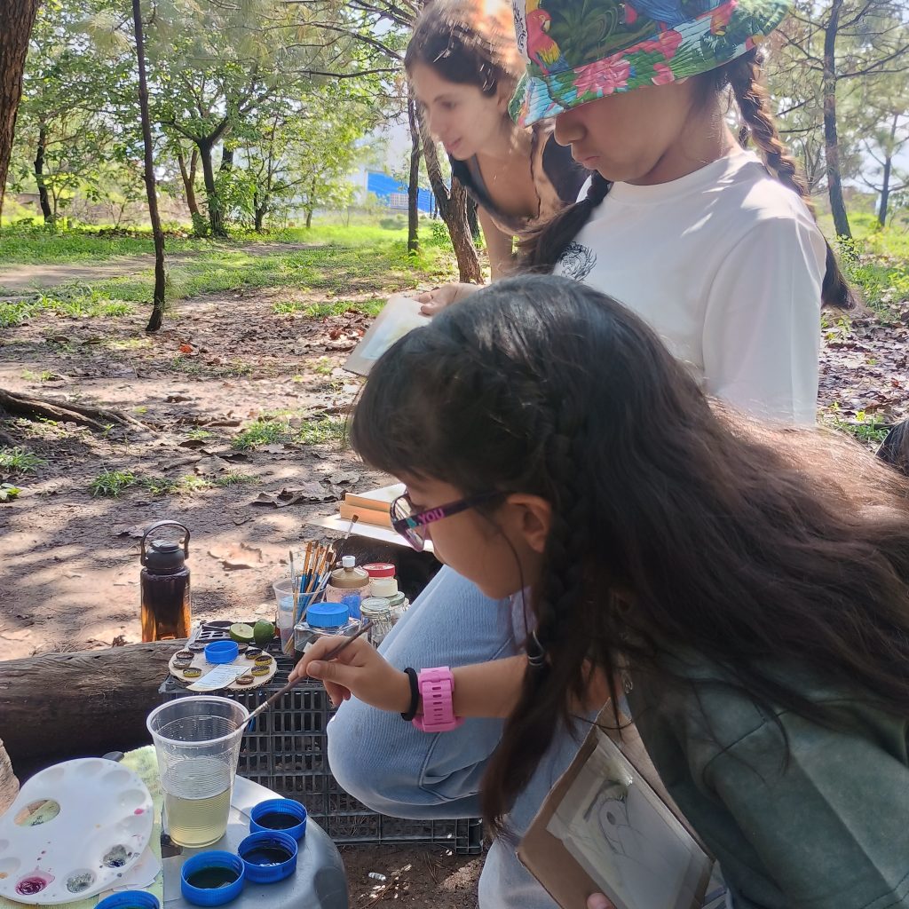 Las actividades fueron una invitación para dejar de lado el ruido de la ciudad, su contaminación visual y el caos que nos habita cuando nos perdemos en “la selva de asfalto”, para despertar los sentidos con los colores que se pueden extraer de plantas, flores y de la tierra. El taller de acuarelas con pigmentos naturales fue una oportunidad para sentir el bosque, escuchar el canto de las aves que lo habitan, para concentrar la mirada y observar el entorno, aprender cómo el bosque se comunica con colores, olores y sonidos.